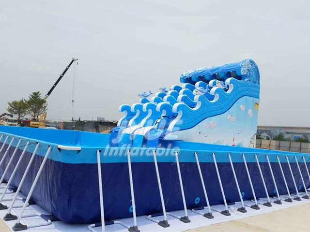 The water park mainly teaches swimming and playing while taking care of swimming. The metal frame swimming pool is used as an outdoor shallow water amusement and is equipped with a complete water purification system. Combined with small water slides, lan