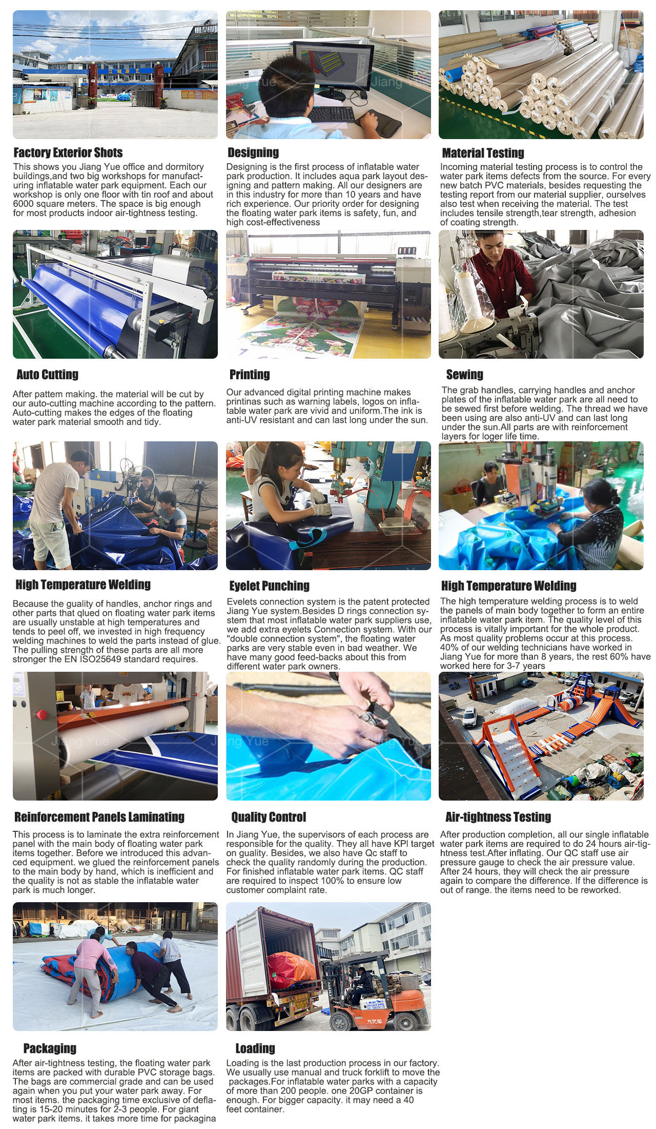 Since it's not a small investment to start an inflatable water park business, in order to learn more about Jiang Yue, welcome to visit us personally before buying the water park. During your visit, you can see how we design the inflatable water park items, each process of the production and how we control the quality. You can also discuss your water park plan with our designer and sales representative face to face. It will be helpful for you to make the decision.